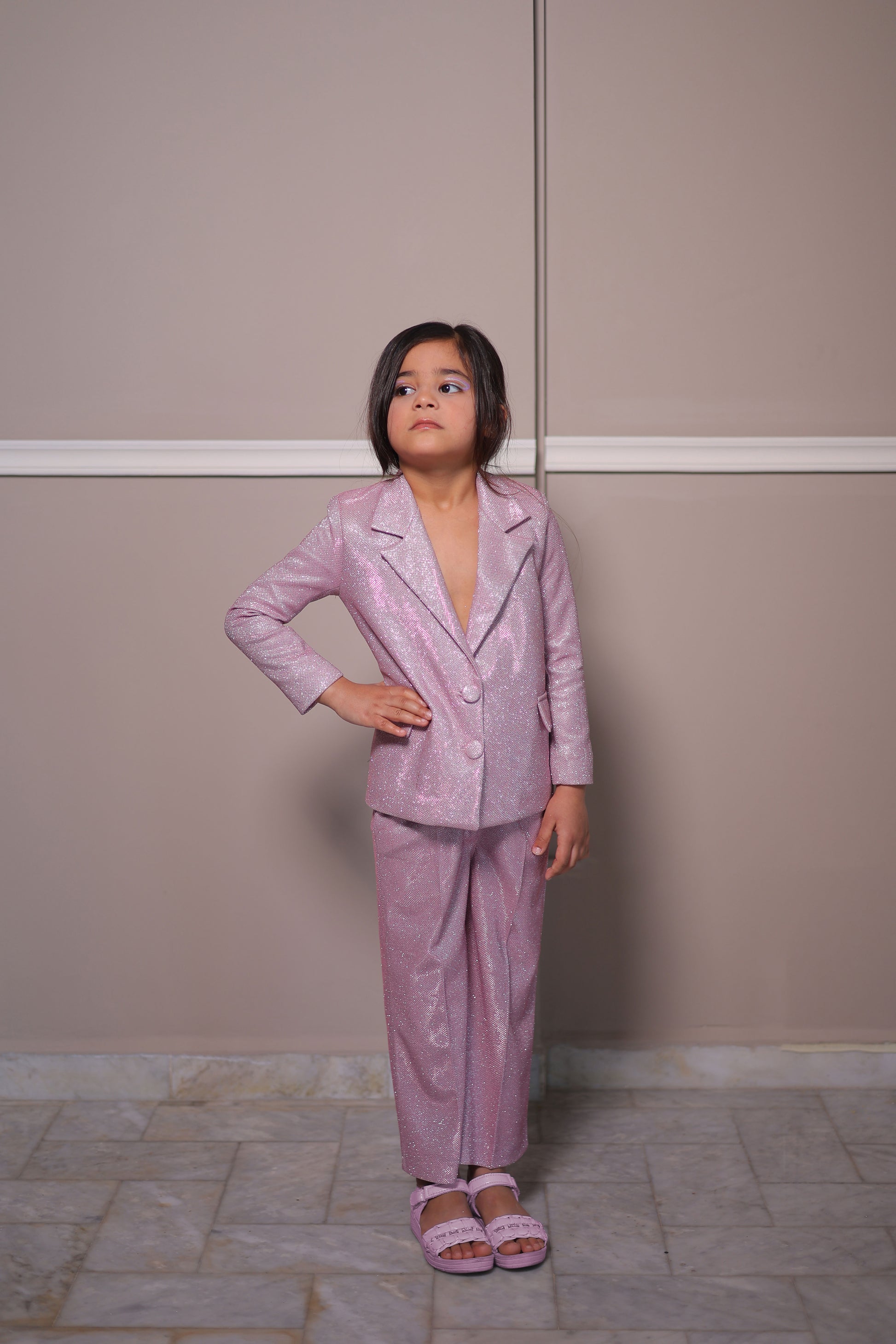 Glitter Suit In Baby Pink